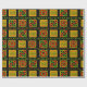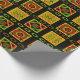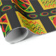 This wrapping paper has a Black History design of circles, triangles, diamonds, lines, and zigzags forming a pattern.