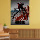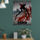 Science fiction faux propaganda poster design featuring an illustration of a giant alien tripod war machine.