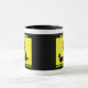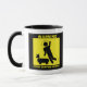 Warning - Corgi Tripping Hazard. Bright yellow and black design is on a mug so you might warn all others to watch out for the short little corgi as you drink your morning coffee. They have a tendency to get underfoot! Funny corgi products.
