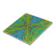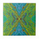 Trippy Chartreuse and Blue Abstract Butterfly Ceramic Tile