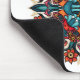 Trippy psychedelic mousepad with a groovy mushroom mandala with eyes and flowers. The funky style of this illustration resembles hippie art from the sixties.