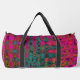 These Cool Colourful Large Duffle Bags feature a Trippy Turquoise Abstract Retro Atomic Waves Design with Magenta, Hot Pink, Orange, Purple, Teal, Green, Gold and Black Accents. The result is a colourful, trippy, groovy, abstract design that you will love!