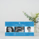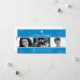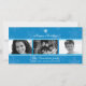 Showcase your family with three photos against a lovely seasonal snowflake background accented by turquoise rules. Your customised holiday message stands out in white against the true blue background topped off by a single white snowflake. Available in alternate colours with matching favours and postage.