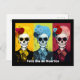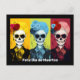 This captivating Dia de Muertos postcard showcases three stunning renditions of La Calavera Catrina in a state of dazzling pop art brilliance. Each Catrina is a kaleidoscope of vivid colours, paying homage to the lively spirit of this traditional Mexican holiday.