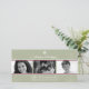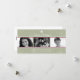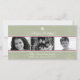 Showcase your family with three photos against a lovely seasonal snowflake background accented by red rules. Your customised holiday message stands out in white against the sage green background topped off by a single white snowflake. Available in alternate colours with matching products.