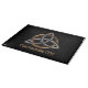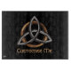 Triquetra (pronounced /traɪˈkwɛtrə/) is a noun derived from the Latin tri- ("three") and quetrus ("cornered"). Its original meaning was simply "triangle". Nowadays, it has come to refer exclusively to this more complicated shape: formed of three vesicae piscis, often with an added circle (as seen here). Much like its predecessor: the triangle, it's used to symbolise the power of things and persons that are threefold.