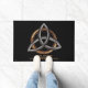 Triquetra (pronounced /traɪˈkwɛtrə/) is a noun derived from the Latin tri- ("three") and quetrus ("cornered"). Its original meaning was simply "triangle". Nowadays, it has come to refer exclusively to this more complicated shape: formed of three vesicae piscis, often with an added circle (as seen here). Much like its predecessor: the triangle, it's used to symbolise the power of things and persons that are threefold.