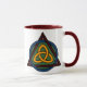 this triskelion is surrounded by two other symbols of power: the triangle and an unbroken circle