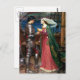 Tristan and Isolde with the Potion by John William Waterhouse, oil on canvas c. 1911, depicts the hero of Arthurian legend and knight of the Round Table with the damsel Isolde (Iseult). King Mark of Cornwall sent Tristan to escort the king’s bride home, but Tristan and Isolde took a magic potion that made the characters fall hopelessly in love, leading to great tragedy in the land of Camelot. Waterhouse paints the scene in brilliant, bold colours in a painterly, near Impressionist manner, imbuing a mythic, fairy tale quality to the knight in armour and lady who have boarded their ship.