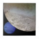 Nasa space photograph of planetary moon Triton with Neptune in the distance.