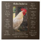 This large 6x6-inch ceramic tile is a humourous look at what a chicken/rooster might have on their bucket list. Espresso Brown background, white text and a photo printed on of a Rhode Island White rooster standing by a tree trunk. Complete the look by adding a frame to your trivet to keep on stand by in your kitchen.