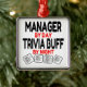 This cool text design featuring the phrase "Manager by Day Trivia Buff by Night" with trivia cards is perfect for any manager who loves playing trivia.