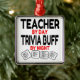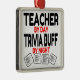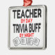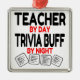 This trivia lover Christmas ornament featuring the quote "Teacher by Day Trivia Buff by Night" with trivia cards is perfect for any teacher who loves playing trivia.