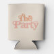 This "the party" bachelorette can cooler features a retro themed font in orange and pink. Order the white 'wife of the party' for your bride and order the matching 'The Party' koozies for your bachelorette weekend. Colours are editable! Click 'edit design' to create your own colours.