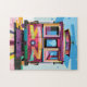 Shades of blue, yellow, pink, and purple come together in this incredibly colourful pop art jigsaw puzzle that offers a trendy and modern version of a trolley in San Francisco, California, USA.