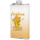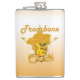 The flask itself is fine. It’s a cheap flask, obviously bought in bulk, however am prepared to overlook that. Given that it is a personalized item, I would have liked to have seen gift boxing instead of the generic packaging. Terrible printing, and/or quality. It’s a cheap, tacky vinyl. It is not cut straight and is also applied in a way that it is overhanging the bottom, causing the glue to catch on items and it will eventually roll and tear, damaging the wrap.