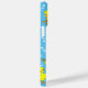 A jumble of white music notes and a cute yellow chick holding a trombone against a blue background is a unique music design for low brass musicians, music teachers and school students in concert, jazz and marching band.