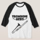 A parody of a video game. An image of a trombone with game controller keys on it and the words "Trombone Hero"