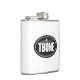 The flask itself is fine. It’s a cheap flask, obviously bought in bulk, however am prepared to overlook that. Given that it is a personalized item, I would have liked to have seen gift boxing instead of the generic packaging. Terrible printing, and/or quality. It’s a cheap, tacky vinyl. It is not cut straight and is also applied in a way that it is overhanging the bottom, causing the glue to catch on items and it will eventually roll and tear, damaging the wrap.