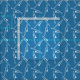 White scattered trombones on a blue background.