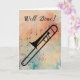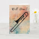Celebrate a trombone performance with this striking design featuring a black silhouette of the instrument against a lively backdrop of watercolor blues and oranges. Musical staff lines and notes sweep across the composition, suggesting motion and musicality. The phrase “Well Done!” in handwritten script gives a personal, uplifting touch—ideal for recognising effort, progress, and performance after a school concert or recital.