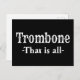 A funny Trombone slogan design in white ink on dark background that says "Trombone - That Is All".
