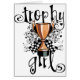 Cute racing gift ideas for girls. A trophy with chequered flags and a heart and flower design and the saying Trophy Girls is available on t-shirts, sweatshirts, mugs, buttons, stickers, caps, aprons, key chains, cards, and more for women and girls. Great gifts for race fans.