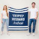TROPHY HUSBAND funny fleece blanket for men. Cute personalized blanket for future husband, groom to be, husband, soon to be married guy etc. Cool quote accessory for him. Make your own fun gift. Humorous present for wedding party, bachelor party, bachelorette party, birthday, honeymoon etc. Customizable in different colors. Navy blue and white example. Masculine manly typography template. Add your own funny quote or saying etc. Create his and hers towel set for bride and groom couple. Available in different sizes.