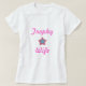 Fun bride's t-shirt, with bold pink script text reading Trophy Wife and a applique looking star, in the middle.