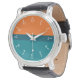 If you considered yourself to be stylish, you'd want a watch that matched your fashion sense. Well, look no further. This watch features classic white numerals on an orange, teal, and aqua background.