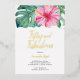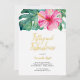 Tropical yet elegant personalised calligraphy invitations frames your event details with a border of simple gold confetti, a pink hibiscus flower and botanical greenery over a crisp white background. Your event details are set in an simple sans serif and script type in real gold foil. Perfect for a 50 and fabulous 50th Birthday party with a luau theme. Watercolor artwork and design by Victoria Grigaliunas of Do Tell A Belle. To see more elegant foil stamped fab Birthday invitations like this visit www.zazzle.com/dotellabelle