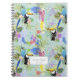 Abstract shapes and squiggles match up with tropical foliage and toucans and parrots. Cheerful colours of aqua, green, hot pink, sunny yellow, and black and white make a multicolored palette.