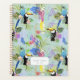 Abstract shapes and squiggles match up with tropical foliage and toucans and parrots. Cheerful colours of aqua, green, hot pink, sunny yellow, and black and white make a multicolored palette.