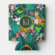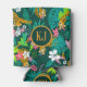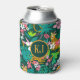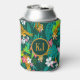 Colourful jungle flowers and leaves with tropical animals in a seamless pattern—customisable monogram.