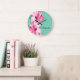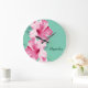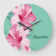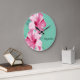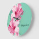 Tropical Aqua Teal with Pink Hibiscus Flowers Large Clock