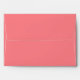 Tropical Art Deco Golf Course Envelope. This colourful and fun envelope features an art-deco-style illustration of a tropical golf course with pink flamingos, a golf cart, and palm trees. The bold bold orange and pink colours compliment the matching 50th birthday party invitations.