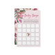 Entertain your guests with our baby bingo game, featuring a cute hummingbird and tropical flair. Brimming with vibrant colours and elegant modern touches, this game showcases lush green palm and monstera leaves, vivid magenta and fuchsia orchids, and delicate blush pink hibiscus flowers. Ensure your baby shower is filled with fun and excitement with this beautifully coordinated bingo game.