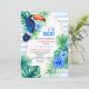 A tropical-theme baby shower invitation with a toucan, tropical flowers and foliage against a blue and white stripe background. (<a href="https://www.freepik.com/free-photos-vectors/background">Background vector created by BiZkettE1 - www.freepik.com</a>). <br/><br/>The card is easy to customise with your wording, font, font colour, paper shape options and choice of six paper types.<br/><br/>Not exactly what you're looking for? All our products can be custom designed to meet your needs at no extra charge.<br/><br/>Simply contact us at askcottonlamb@gmail.com.<br/><br/>Coordinating products available: Just ask us!"