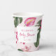 Tropical Baby Shower Paper Cups. Serve your guests in style with our paper cups featuring a tropical pattern background. The lush green palm and monstera leaves, vivid magenta and fuchsia orchids, and delicate blush pink hibiscus flowers add a cohesive and festive flair to your table settings, ensuring every detail is perfectly coordinated.