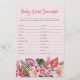 Tropical Baby Word Scramble. Add fun and excitement to your baby shower with our baby word scramble game. This game features elegant modern touches and vibrant colours, showcasing stunning watercolor artwork with lush green palm and monstera leaves, vivid magenta and fuchsia orchids, and delicate blush pink hibiscus flowers. Keep your guests entertained and engaged with this beautifully designed game that complements your tropical theme perfectly.