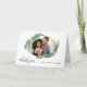 Thank your wedding guests with a unique photo card featuring an oval cutout frame surrounded by lush tropical banana leaves. Modern thank you text is written on the lower left of the card and a text template for the bride and groom's names is on the lower right side of the card. A sample thank you message has been included on the inside of the card that you can edit with your own words, or delete the text if you wish to hand-write your thank you notes. Replace the sample photo with your desired wedding, honeymoon or other photo of your choice.