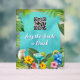 Tropical bar sign for a bachelorette party. Upload a QR code for guests to gift the bride money towards her drinks. Aqua blue, with big leaves border, hibiscus flowers and cocktails design. The opaque acrylic 8x10 size also has a leafy border. Optional, wood stand to come with it. Some of the larger sizes also work, but the design placement may change.