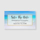 A magnetic business card with a wedding save the date design with a sandy tropical beach. A gorgeous turquoise sea in the distance and crystal clear waters caressing a sandy beach. A bright blue sky in the background.