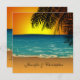 A romantic tropical beach design featuring an illustration of a beach scene at sunset with a silhouette of palm leaves in the foreground. The design is featured on both sides of the wedding invitation. The front of the invitation has customisable text to add the name of the bride and groom while the back is customisable for the details of your upcoming special occasion. This wedding invitation coordinates with the Tropical Beach at Sunset Wedding Collection. If you need assistance with the customisation for your special day or would like this on products not currently offered with this design, please contact us through our WeddingBazaar store.