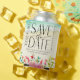 Tropical Beach Calligraphy Wedding Save The Date Can Cooler
