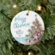 Celebrate the season with this festive and beachy round Christmas ornament, perfect for a coastal holiday celebration. The design features a whimsical Christmas tree made of beach shells, starfish, and coral, with a mix of green, tan, and a pop of orange-red on the starfish at the top—bringing a fun tropical twist to your holiday decor.