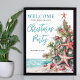 A bright and cheerful way to greet guests, this design adds coastal flair to any tropical holiday celebration. All text, fonts, and colours can be customised to suit your event style.