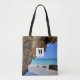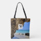 Tropical Beach Coast with a Big Rock Monogram Tote Bag