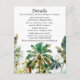 This elegant and beautiful watercolor wedding details card features a beach and palm trees. The text combines handwritten script and sans serif fonts for a stylish and modern look. This is perfect for a summer beach or tropical destination wedding.