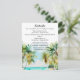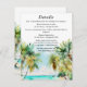 This elegant and beautiful watercolor wedding details card features a beach, blue sky and palm trees. The text combines handwritten script and sans serif fonts for a stylish and modern look. This is perfect for a summer beach or tropical destination wedding.